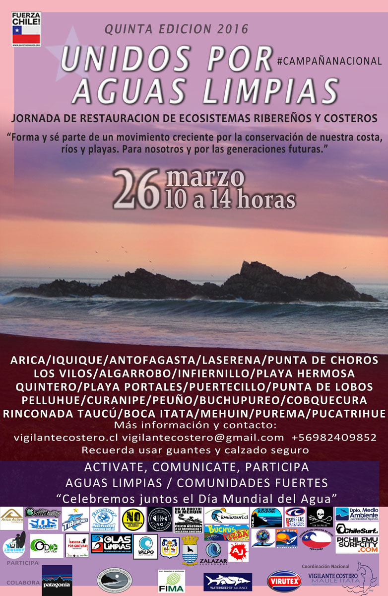 AFICHE2016_act_2103Ya están confirmadas muchas playas de Chile para este 26 de Marzo, no te quedes fuera y actúa por tu playa.